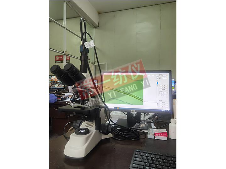 通过高分辨率的工业摄像机将光学显微镜与计算机相连,依靠专业的分析软件完成纤维直径和截面积的测试等工作,并可测量出混纺纤维中各纤维的含量。
