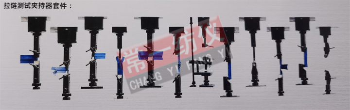 用于拉链的平拉、上止、下止、开尾平拉、插座移位、拉头拉片结合、拉头自锁及拉头抗张、抗扭等强力测试。适用标准